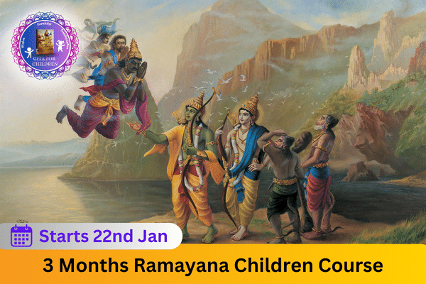 Ramayana for Kids is a complete course specifically designed for young learners to introduce them to the ancient Indian epic, Ramayana in 3 months (100 sessions) starting Jan 22 . Through fun and engaging storytelling, interactive activities, and beautiful illustrations, children will discover the heroic adventures of Lord Rama and his brave companions. This course aims to instill values like courage, loyalty, and righteousness, while also enhancing children's imagination and creativity.